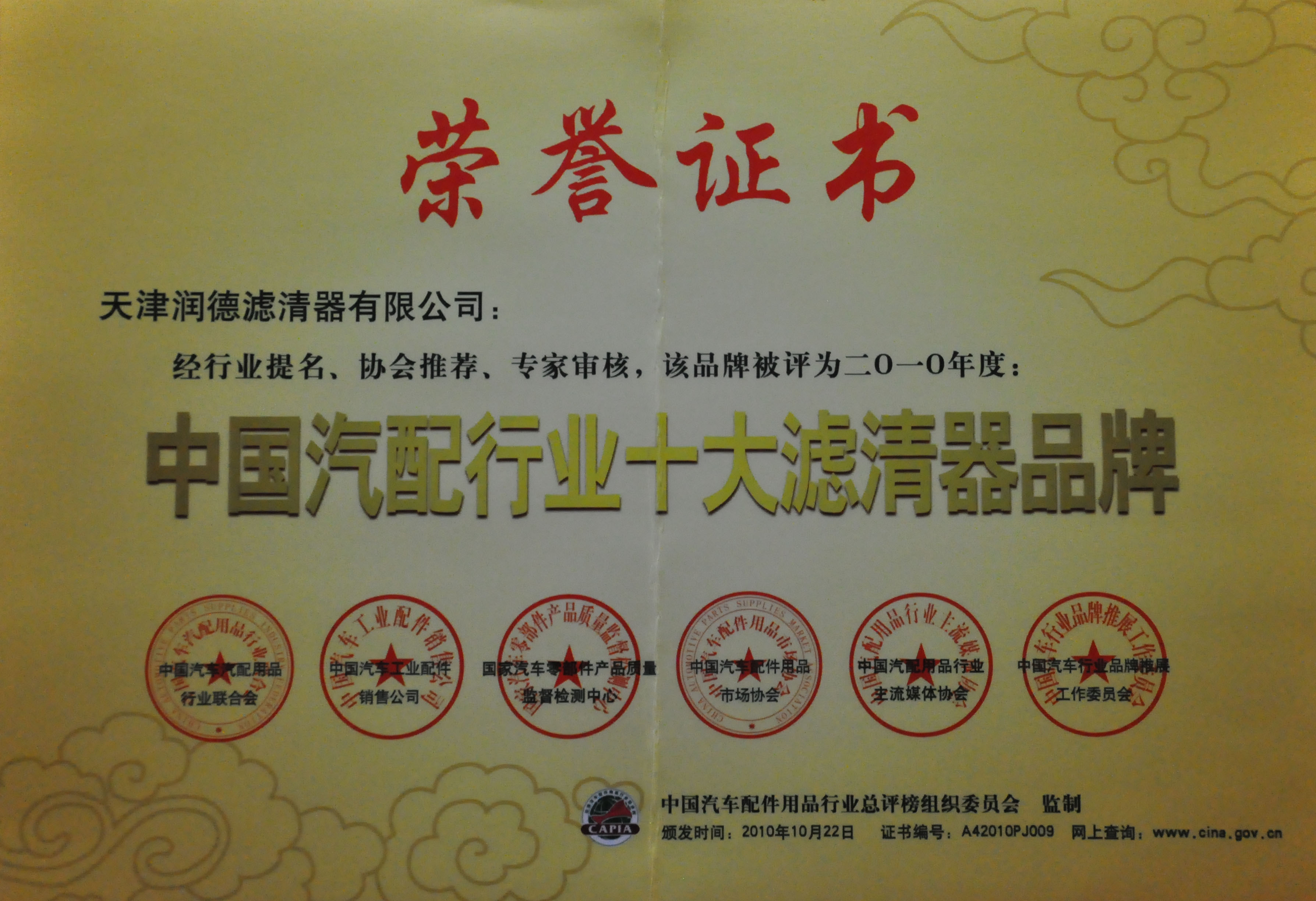 天津润德滤清器有限公司是原天津维克斯滤清器有限公司资产重组后成立的,滤清器公司始建于20世纪60年代中期,已有50多年建厂历史,是生产车用滤清器产品的专业企业。生产过程采用美国维克斯公司的设计工艺、制造技术、产品检验、试验设备。有了先进设备及工艺,更需要具有强大的技术开发能力和完善的进口试验、产品检测设备,完整先进的进口生产线才能更好地制造出产品。产品的各项技术指标均达到国家标准和SAE标准,1999年通过ISO9001质量体系认证;2001年通过QS9000和VDA6.1质量体系认证;2007年通过ISO/TS16949:2002质量体系认证。天津润德滤清器始终以 “生产的是产品,销售的是信誉”,追求产品无缺陷为经营理念,从而被行业客户认可并被评为行业十大知名品牌称号。