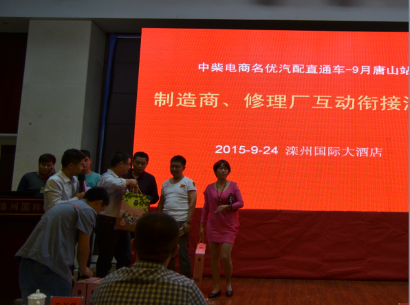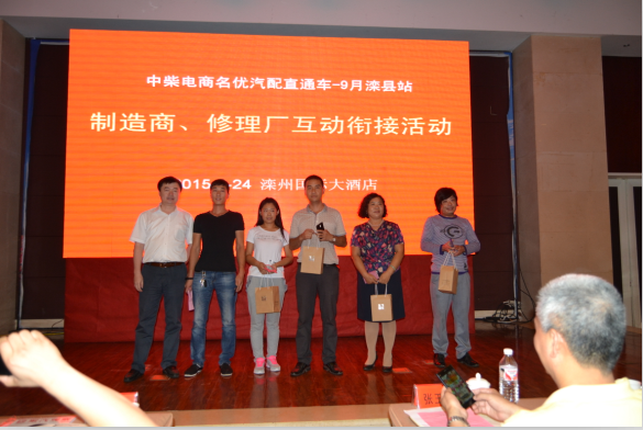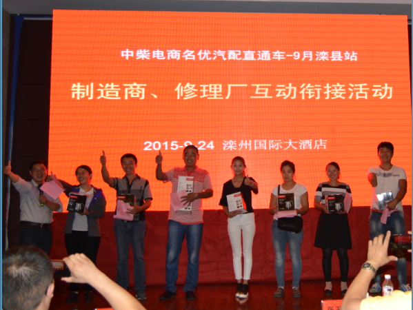 继中柴电商名优直通车第一站在邯郸推广活动后,中柴电商收获了许多修理厂不断在线上注册下单后。由中柴电商与兴达商贸联合主办的、《聚汽观察》主编付小军主持的“中柴电商名优直通车第二站——唐山(滦县)站”于2015年9月24日下午13:30在滦州国际大酒店举行。来自全国11家优秀品牌厂家、滦县近260家修理厂企业、特邀嘉宾——全国商用全国商用车配件产销联合会高级顾问、资深专家赵艺林出席并做了精彩发言,此次大会得到《聚汽观察》和《商用车汽车零部件》两大杂志媒体主编亲临会场进行报道。