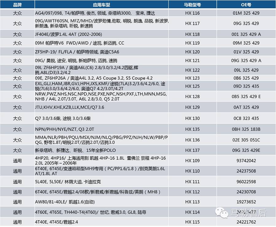 首批上市的产品适用于大众和通用两个车系,之后还将有更多产品陆续上市。此外马勒还提供滤油器配套垫片供您选择。