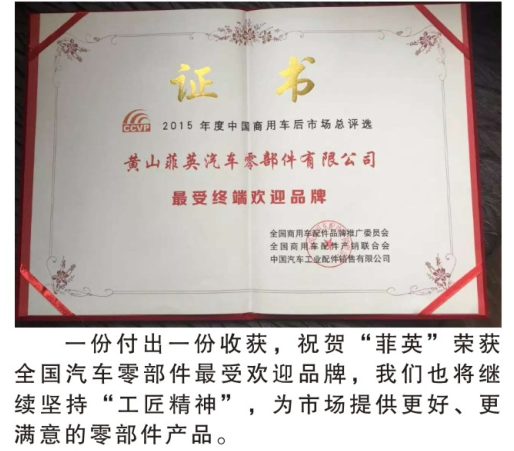 菲英获此殊荣,不仅是公司20多年来努力的成果,得到了行业及市场的认可,同时也为菲英未来发展起到指引作用。我们不仅要发扬“工匠精神”,为市场提供更好的、质量更稳定的产品,还要不断提高顾客满意度,提升品牌影响力,早日实现公司“做中国最专业的、综合实力最强的摩擦材料制造商和品牌服务供应商”这一伟大愿景。