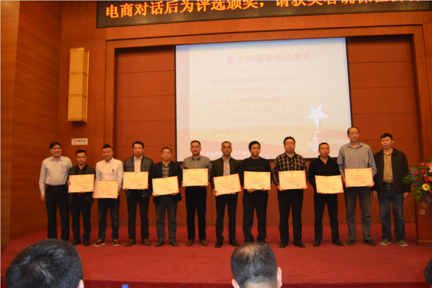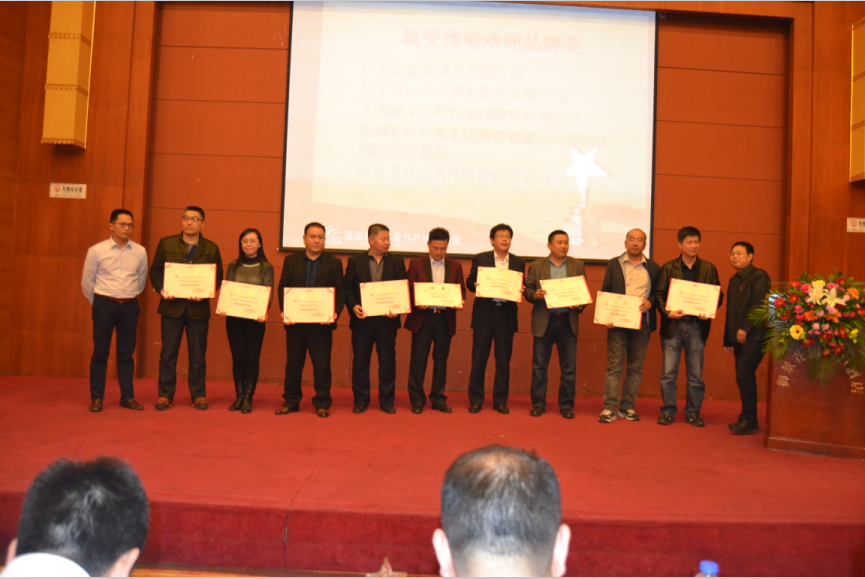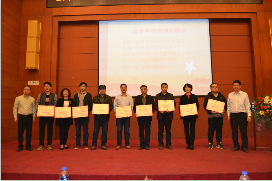 42个最受终端欢迎品牌奖:全兴精工集团有限公司、东风德纳车桥有限公司、山东滨州渤海活塞股份有限公司 、长春解放汽车底盘有限公司 、青岛龙江海密封科技有限公司、瑞立集团有限公司 、安庆帝伯格茨活塞环有限公司、杭州冠英汽车零部件有限公司、广东四会实力连杆有限公司 、济南沃德汽车零部件有限公司、扬州五亭桥缸套有限公司、天润曲轴股份有限公司 、浙江银轮机械股份有限公司、石家庄金刚凯源动力科技有限公司 、山东路安明驭汽车零部件有限公司、成都银河动力有限公司、福建艺达电驱动股份有限公司、大丰海纳机械有限公司、福建华盖机械制造有限公司、广西金锋汽车零部件制造有限公司、河南省西峡汽车水泵股份有限公司、黄山菲英汽车零部件有限公司、山东龙口隆基制泵有限公司、亚新科美联制动技术(廊坊)有限公司、浙江铁流离合器股份有限公司、湖南安福气门有限公司、江西鑫田车业有限公司、山东高强紧固件有限公司、无锡市贝尔特胶带有限公司、湖南机油泵有限公司、江苏金湖输油泵有限公司、辽宁五一八内燃机配件有限公司、无锡威孚高科技集团股份有限公司、信阳贝恩银光活塞销有限公司、浙江杭万汽车零部件有限公司、中国长安汽车集团股份有限公司、湖南江滨活塞分公司、南京飞燕活塞环股份有限公司、浙江平柴泵业有限公司 、仪征亚新科双环活塞环有限公司 、长春一东离合器股份有限公司 、北京亚新科天纬油泵油嘴股份有限公司、烟台大丰轴瓦有限责任公司 、中原内配集团股份有限公司