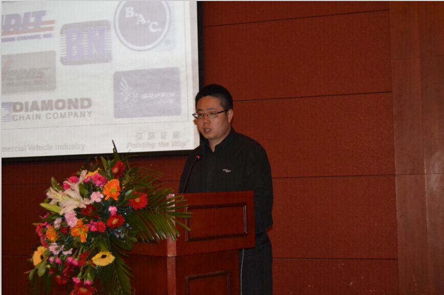 康迈售后及产品服务部经理黄东雷做《国际零部件品牌产品介绍》,让大家对康迈是安施德工业集团的子公司,致力于为商用车领域专业提供高品质的轮端技术解决方案,全球九个生产工厂遍布美国、墨西哥及中国。目前,康迈在轮端产品、铝制铸件和结构塑料的设计和制造领域已经成为公认的行业领袖。2014年全球销售额达到10亿美元。