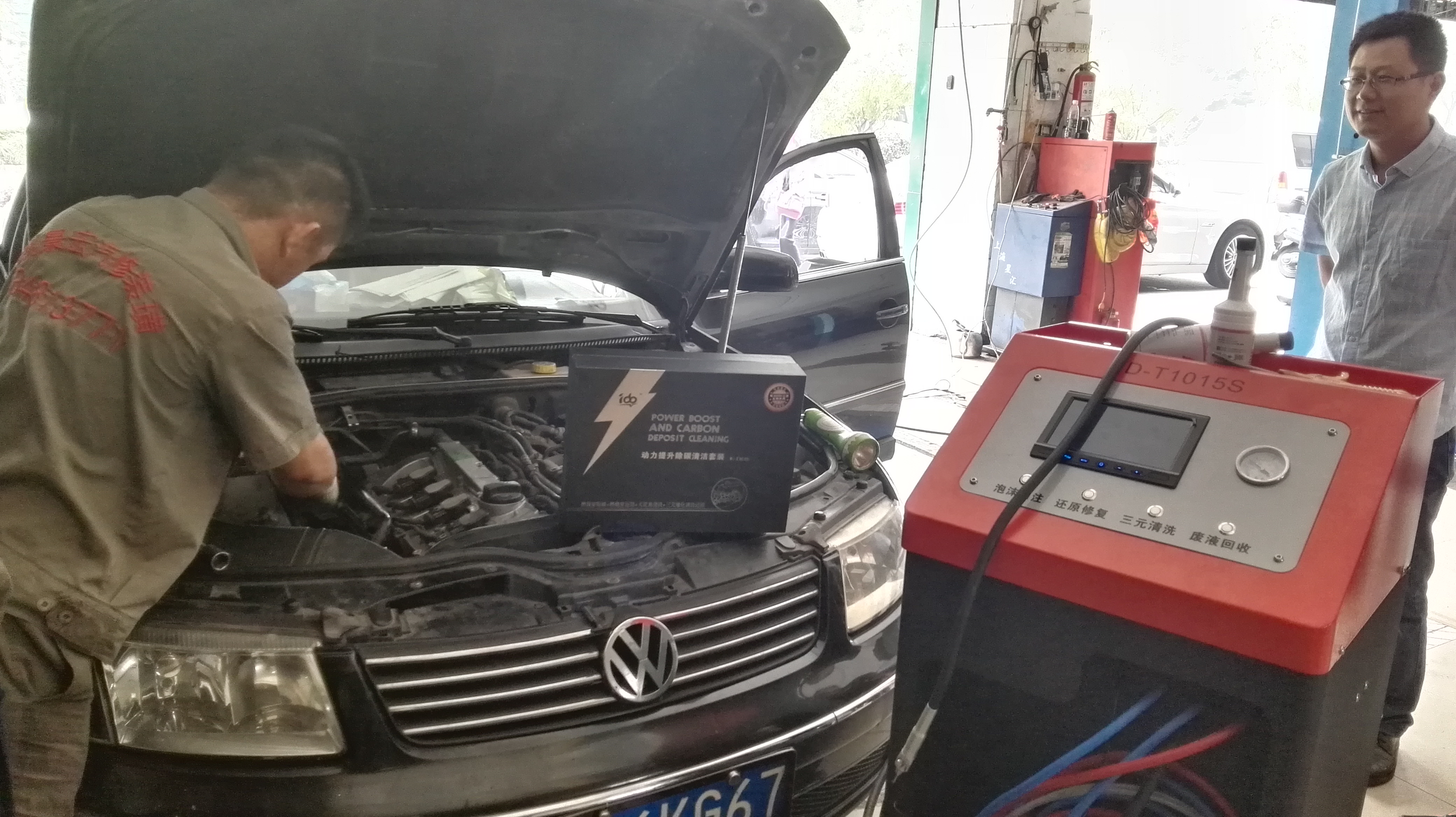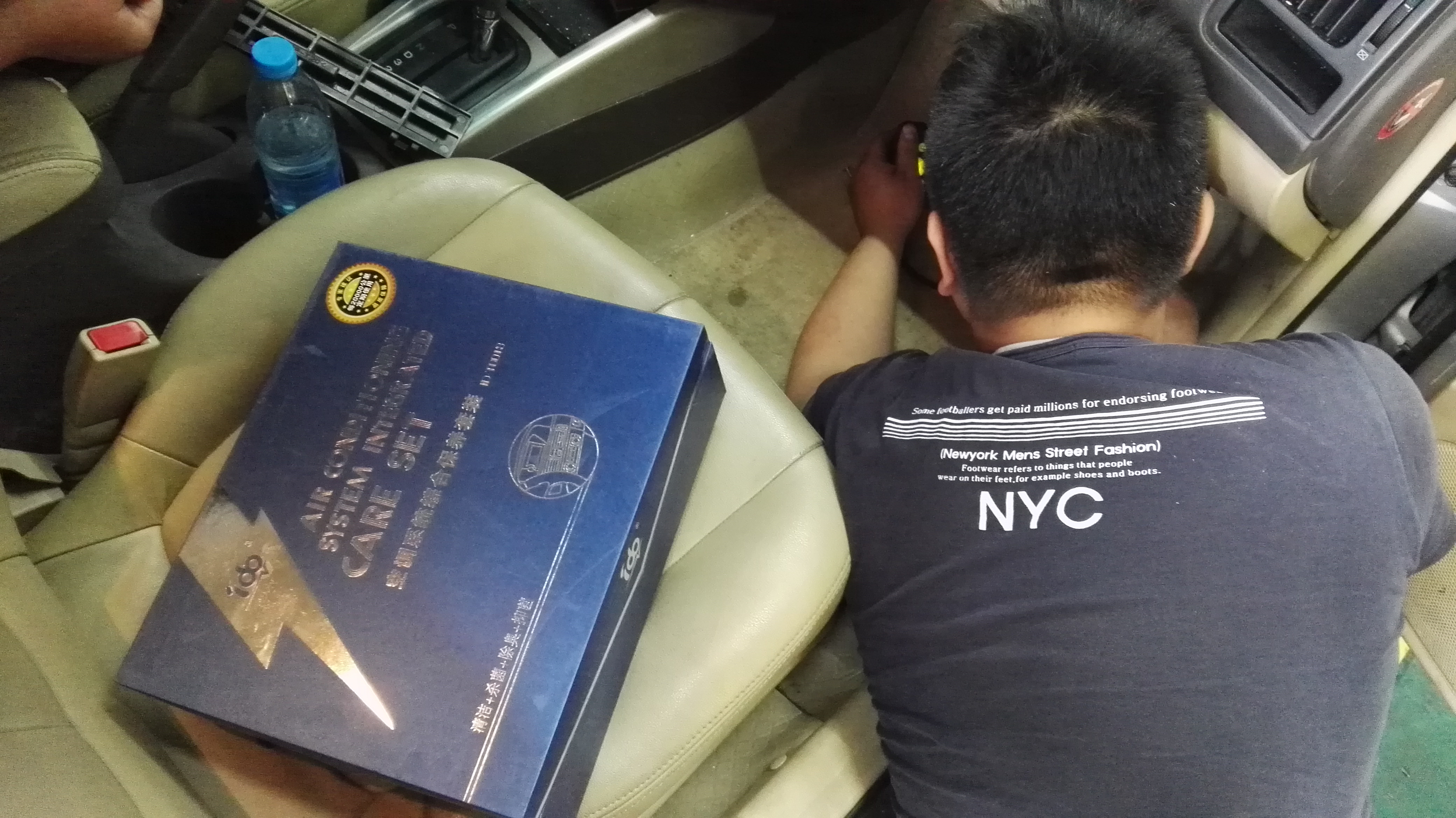 这位大叔级的车主捧着“爱动提升除碳清洁套装”时露出憨厚的微笑。