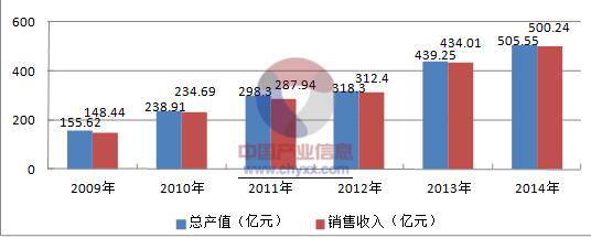 2009-2014年中国滤清器制造行业工业总产值和销售收入情况
