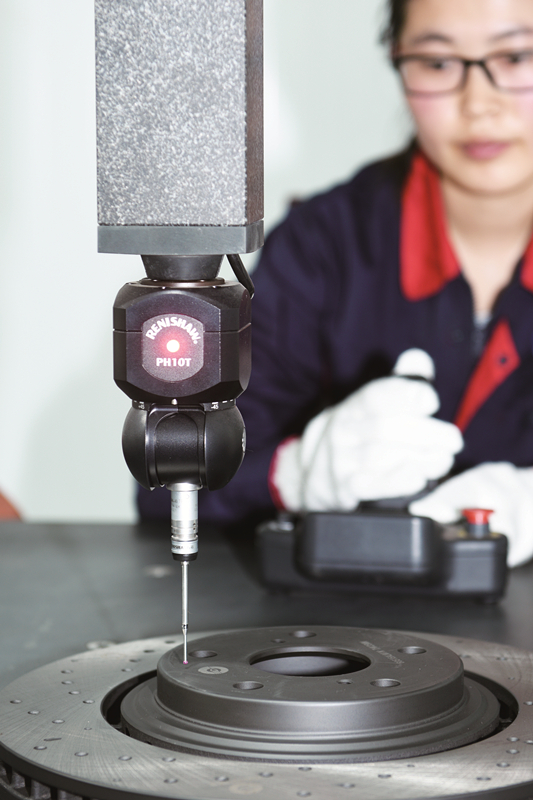 在日常工序中,美丰严审原材料以确保去粗取精,去伪存真。首先是原材料的检查、铸造过程的每批次铁水和毛坯的检查,包括成分、本体、外观的检查;再是加工过程中的过程控制,包括首件检查、巡检抽查、终检的全检,以及附件及包装物料等所有外部供货的物料检查。在产品工序中秉持匠心制造精神,对于167道工序的检验,美丰公司按照“国家级制动系统检测联合实验室”的规划配备了先进的精密检测设备,如:德国斯派克光谱分析仪、德国蔡司金相显微镜、英国富臻硬度检测系统、整套型砂检测设备、申克平衡检测机、三坐标测试仪、全自动检测量仪、拉力试验机,从而确保每道工序不出错,品质有保证。