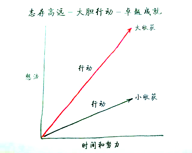 同样的行动,一样的时间,一样的努力,意愿强,斜率就高,意愿弱,斜率就低。辛苦不值得被炫耀。斜率高,收获大,斜率小,收获小。为什么同样时间,同样行动,收获反差如此之大,原因在此。