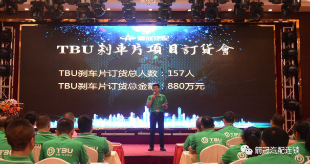 紧接着箭冠汽配营销总监进行了政策宣导,让在场的加盟商对公司的政策支持有了更为直观且深入的了解。现场客户在经历了参观工厂、参加会议之后,纷纷主动上台分享此次的切身体验以及对新品TBU刹车片项目的看法。在随后的现场订货会中,大家踊跃订货,TBU刹车片新品现场订货总人数157人,总额高达880万元。