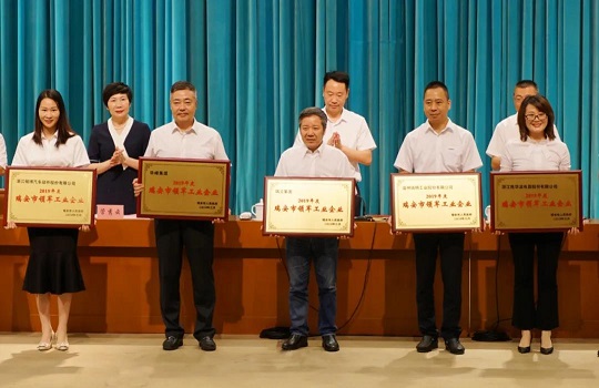 ▲瑞立荣获“2019年度领军工业企业”称号,张晓平董事长(图中)上台领奖
