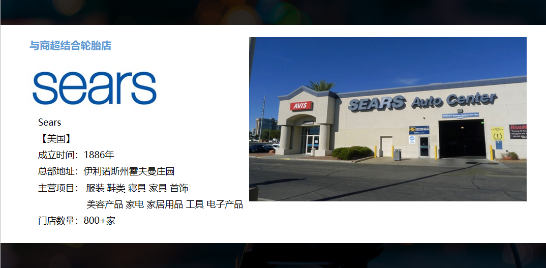 这是美国的Sears,它是一个很大的商超品牌,它有自己的汽车服务中心。在它的汽车服务中心里面和我们的门店结构相差不大。