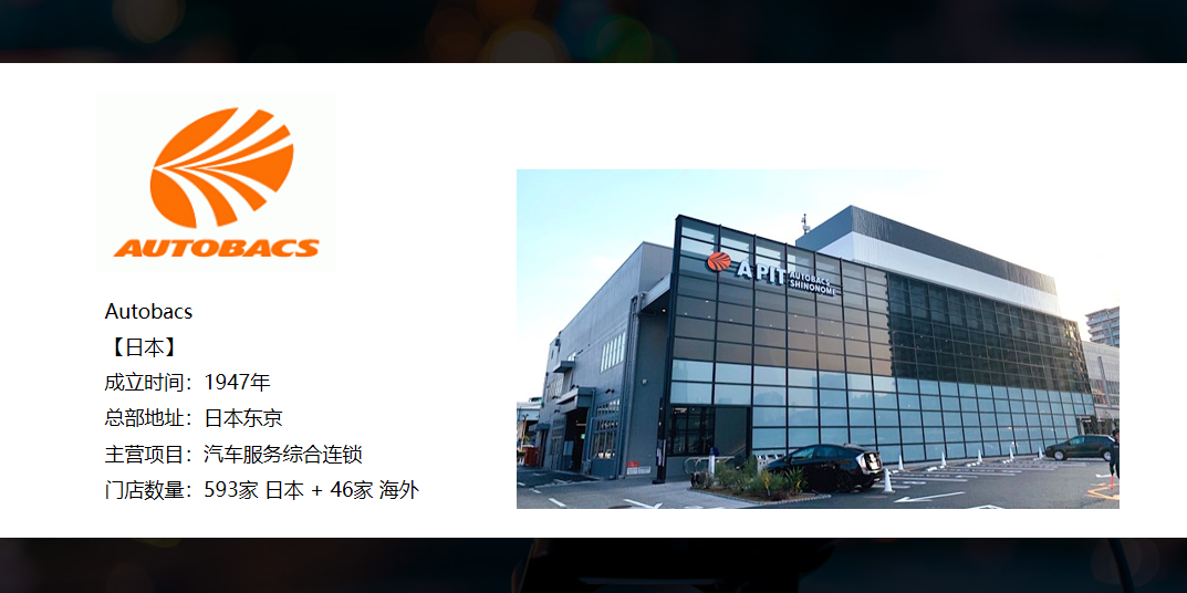 最后要和大家介绍的是日本的AUTOBACS,是日本排名第一的汽车服务品牌,它在日本有600多家门店。