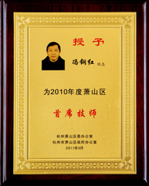 编者按:首席技师,是职工队伍中具有高技能水平、良好职业道德、丰富实践经验,在本行业或领域中技术水平拔尖,业绩贡献突出、影响带动作用较大、得到业内认可的高技能人才。近日,我公司机加工车间刃磨组组长冯钢红经组织推荐、专家评议、综合评审、媒体公示、萧山区人才工作领导小组审定,被评为萧山区2010年度首席技师。冯钢红在平凡的岗位上任劳任怨、默默无闻,用自己的聪明才智为企业作出了很大贡献。企业需要这样的人才,我们DDCT项目的推进更需要类似更多的人才。浪花因为撞击而美丽,人生因为拼搏而精彩。冯钢红的形象,是杭维柯公司职工主人翁精神的缩影,其首席技师当之无愧。