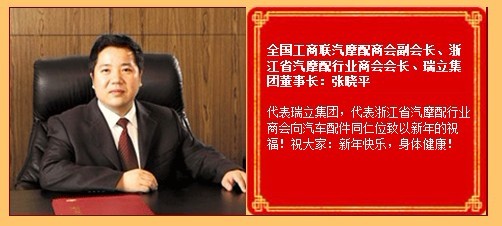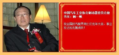 值此新年即将到来之际,“玉兔抱月辞旧岁,金龙踏雪送祥瑞”。转眼时至2012年,龙年掀起龙腾虎跃的开局、龙年谱写崭新祥和的新篇,值此吉祥之时,中国汽车配件人才网、中国汽车配件社区网特别策划“中国汽车后市场百企精英2012龙年新春贺岁”专题,我们集合中国汽车工业协会、中国汽车工程学会、全国工商联汽摩配、中国汽车机动车维修行业、中国汽车零部件工业公司的领导、瑞立集团、万安集团、北泰集团、昊业滤芯、西湖汽车零部件集团股份、菲英汽车刹车片、摩擦1号刹车片、威固、邦博、海蒙汽配连锁、双林汽配连锁、联配通汽配、上海建鑫汽配、北京奔粤汽配、浙江恒生汽配、昆明众志成、广州德智福、南京金飞鸿、西安恒美华成等一批协会、零部件制造企业、零部件经销商、汽车用品经销企业、汽配城代表向即将到来的2012龙年盛世致以新春快乐!将国内汽车配件、汽车用品行业知名企业的诚挚祝福撒遍全行业的各个角落。