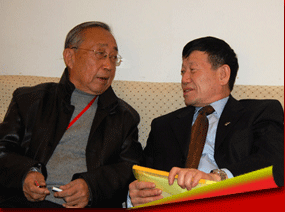 中国汽车零部件工业公司总裁陈康仁(右)与中国汽车配件社区网 付小军合影
