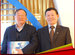 中国汽车工业协会副秘书长熊传林(右一)与中汽协制动器委员会秘书长顾一帆合影