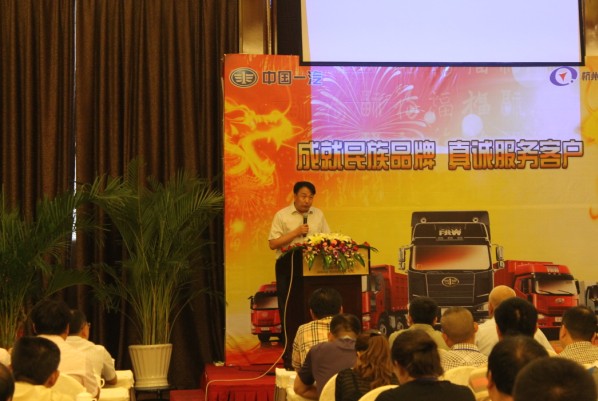 会上杭州一汽备品零部件有限公司董事长俞招娣做欢迎词及展示公司十年与一汽品牌携手的风雨历程,一汽解放汽车销售有限公司白峰部长在会议见证了杭州一汽备品零部件有限公司经营品牌历程,商用车柴油机配件销售联合会高级顾问赵艺林先生在会上分析了汽车后市场的形势与状况。会上杭州一汽备品零部件有限公司给行业一汽服务站、优秀经销商颁奖。