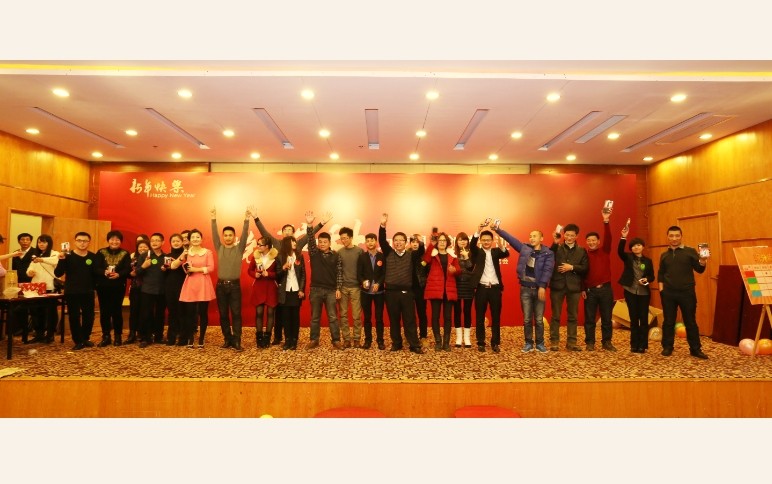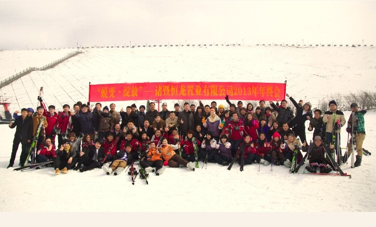 2013年迎新年晚会中主要演员上台谢幕 2013年以蜕变-绽放为主题的全体滑雪合影