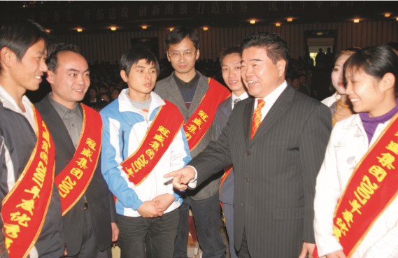 然后2008年也是同样的员工大会,我就讲到:“明年我们每年要提升员工的物质生活、精神生活,把物质生活和精神生活作为我们公司的一个核心的价值观来做。”(记者:这个已经关系到民生问题了)立刻获得大家全体鼓掌。