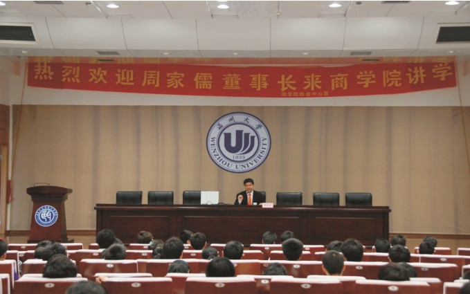“我的名字叫‘家儒’,其中‘儒’字取于刘禹锡《陋室铭》中‘谈笑有鸿儒,往来无白丁’这一句话,父辈们原本期望我能成为一个‘大儒家’,但事与愿违,我成不了儒家,只当了一个老板。”虽然只当了一个老板,但对儒家学说依然情有独钟,当记者把他的名字同“儒家”相联系时,他的回答谦虚中透着自信。周董事长还提到:“人贵在学会‘呼吸’:呼,就是呼出一口气,活的比竞争对手好,不理会嫉妒的人、奸诈的人、落井下石的人;吸,就是要争一口气,时刻坚定自己的立场,我是谁,一个瓯海人,一个温州人,一个中国人!在哪里都要时刻保持自己的尊严和骄傲。”