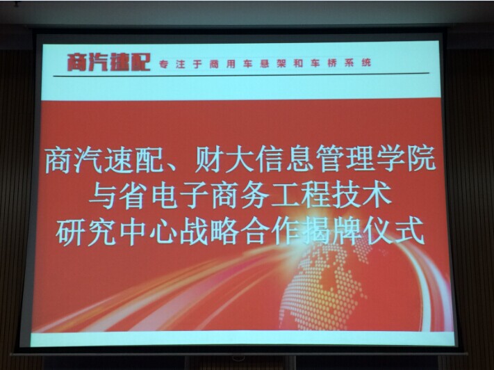 仪式接下来安排由江西财经大学蒋金法副校长代表江西省电子商务工程技术中心为远成集团董事长王远青代表商汽速配授“信息化战略合作”匾牌;江西财经大学信息管理学院方志军院长为商汽速配总经理康朝阳授“江西财经大学信息管理学院教育实习基地”匾牌,接近尾声。实行校企合作、工学结合,发挥优势、相互促进是校企业合作互利共赢的发展方针。