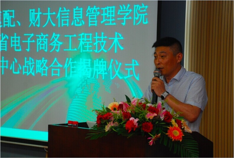 仪式第二项:江西财经大学蒋金法副校长做了重要讲话,他在讲话中讲到对江西省电子商务工程技术研究中心与江西商汽速配汽配有限公司校企合作揭牌仪式表示祝贺,并希望双方以此次合作为契机,按照“发挥优势、相互促进、长期合作、互利共赢”的原则,解放思想,开拓思路,整合资源,深化“互联网+”的全新汽配信息化销售模式,推动“校企合作、产学结合”向更高层次发展,同时融合当下“大众创业、万众创新”的大环境让企业提质增效升级。