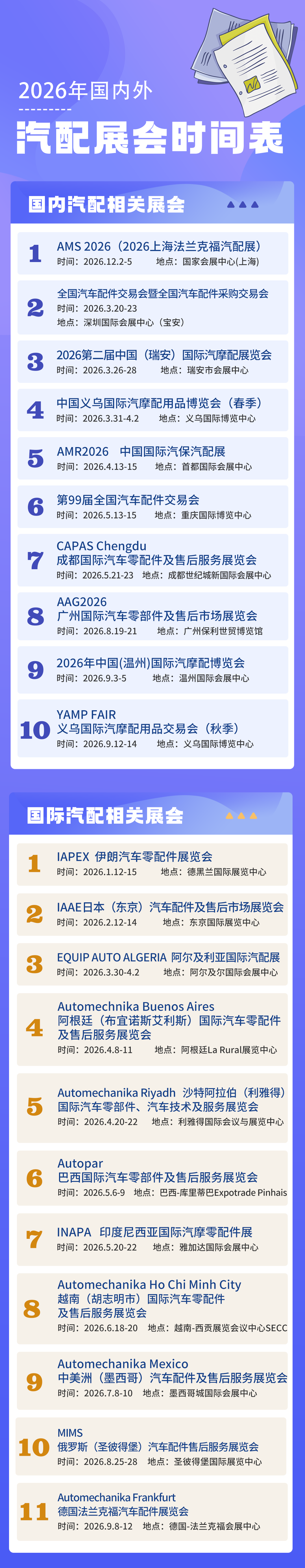 2026年国内外汽配展会时间速速get!