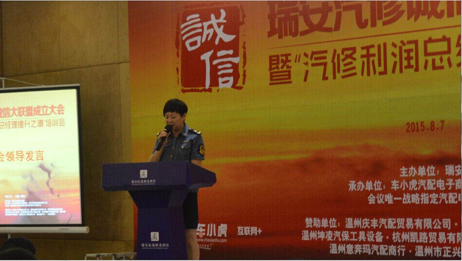瑞安市道路运输管理局副局长赵利文女士的讲话深彻地讲明了企业诚信经营的非常重要,不仅是企业要做强做大的基本准则,随着企业纳入了诚信评估档案后,诚信便是人们精神文明建设的核心原则,并且为瑞安汽修诚信联盟提出了殷切的希望,希望能把诚信恪守成为一切经营合作的前提条件,唯有如此魄力,方可赢得未来.