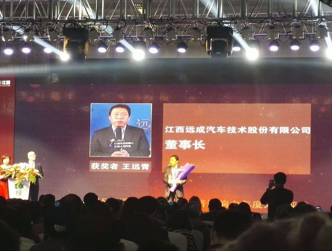 江西远成汽车技术股份有限公司王远青董事长被评为“2015江西年度经济影响力人物”,感谢各位合作伙伴对远成股份及王远青董事长的关心和支持。远成股份将在王远青的引领下,走的更好,走的更远,2016年再上新台阶。