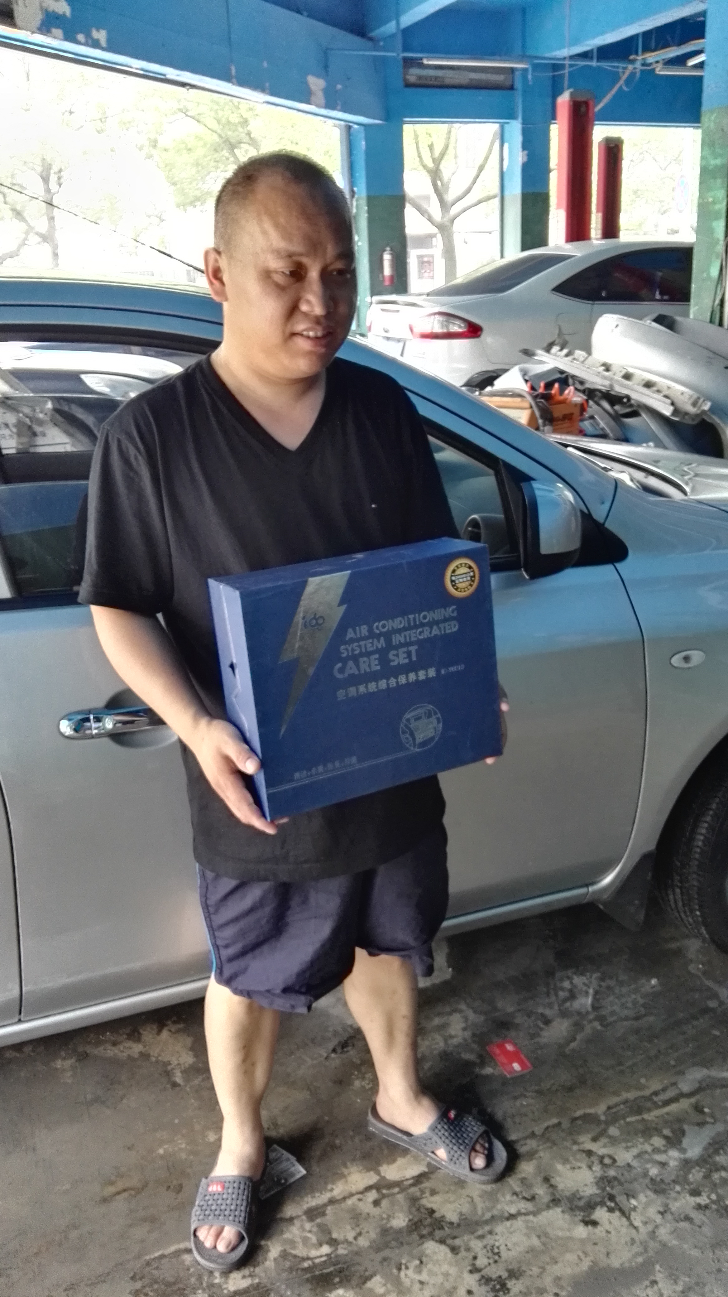 这位大叔级的车主捧着“爱动提升除碳清洁套装”时露出憨厚的微笑。